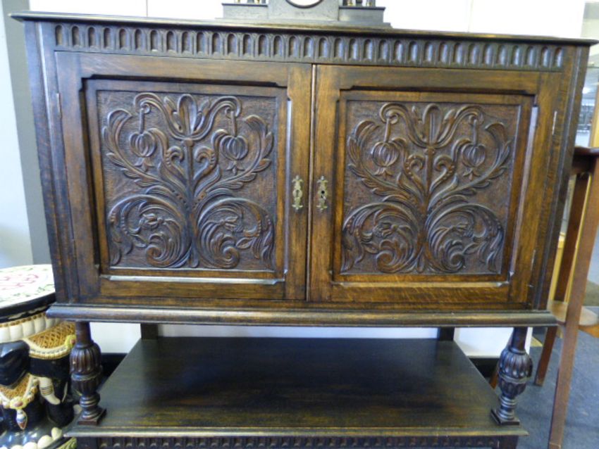 Oak Priory Style Buffet Sideboard with Carved Decoration