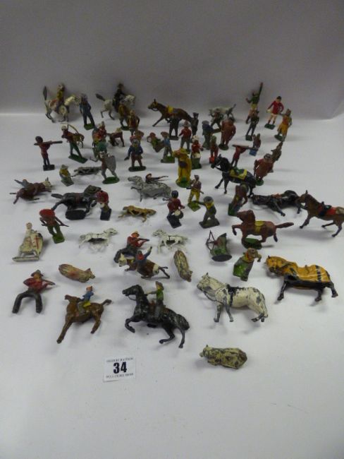 Tray containing Lead Soldiers - Cowboys & Indians etc