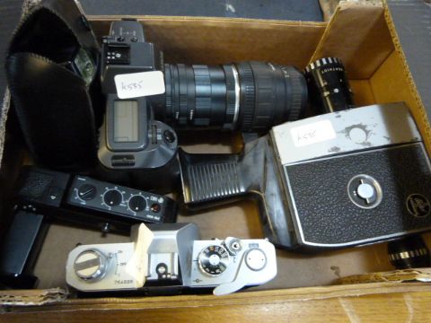 Box containing 2 Canon Cameras & an Old Cine Camera
