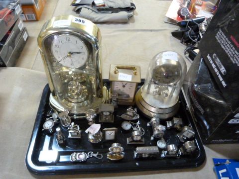 Tray containing Assorted Miniature Clocks & 3 Mantle Clocks