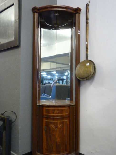 Mahogany Mirrored Back Corner Display Unit with Inlaid Detail & Cupboard