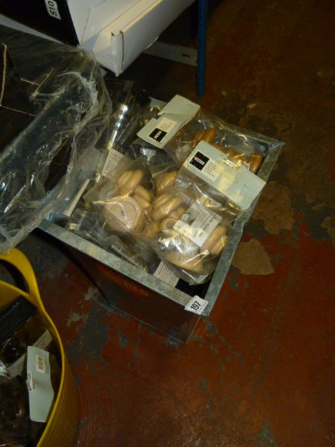 Galvanised Bin containing Curtain Pole Ends