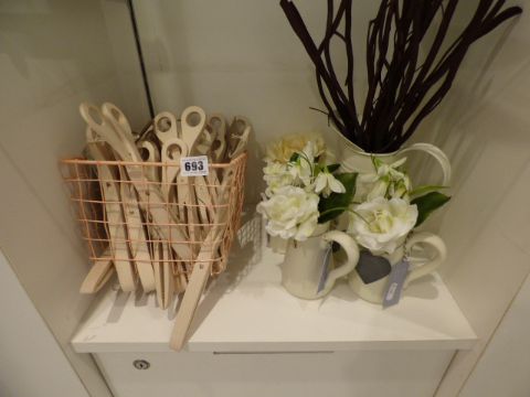 Variety of Lots consisting of Clothing, Footwear, Shabby Chic Furniture,Toys, Food, Cards, Books, Clocks, Cushions, Garment Rails and Display Stands.