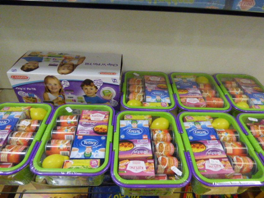 *Children's Cash Register and 8 Shopping Baskets with Contents