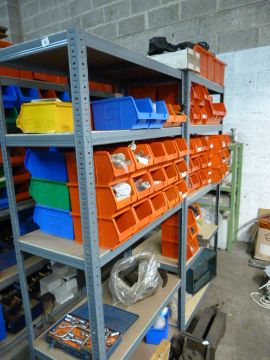*2 Bays of Shelving and Contents including Assorted Lin Bins containing Electrical Fuses, Relay Switches etc