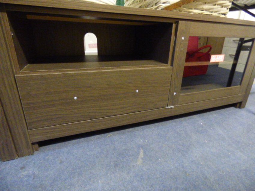 *Home Entertainment Unit enclosed with Glazed Door in Dark Oak Finish with Brush Stainless Steel Handles