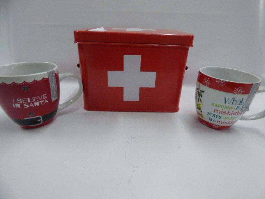 *Metal First Aid Box and 2 Festive Mugs