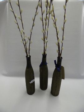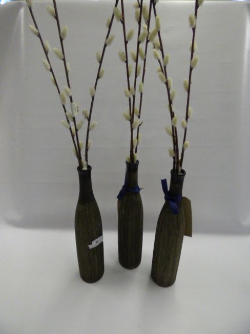 *3 PUSSY WILLOW FLOWER ARRANGEMENTS IN CERAMIC VASES