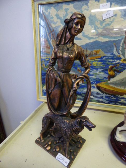 Bronze Effect Deco Style Lady with Dog