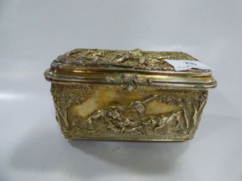 Silver Plated Casket with Hunting Decoration in Relief
