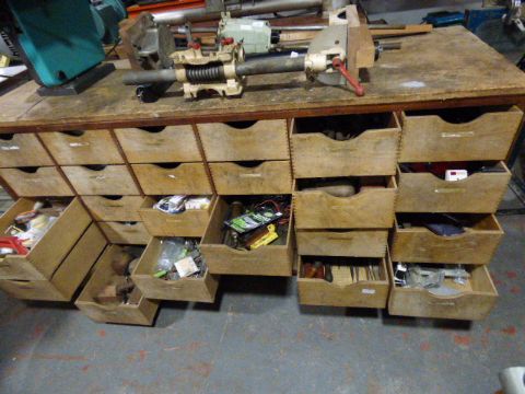 Quick Service Drapery Counter complete with Large Quantity of Teak & Other Hand Tools to Suit The DIY Enthusiast