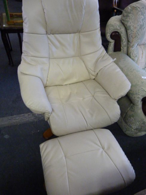 Cream Stressless Style Easy Chair with Matching Foot Stool