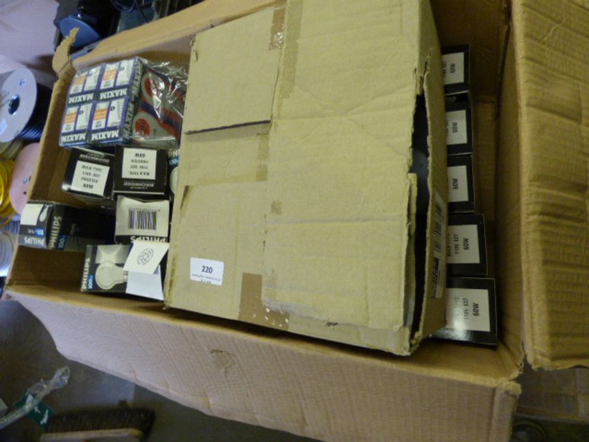 *Box of Light Bulbs and 2 Boxes of 110v Light Bulbs and Worklamp Safety Guards
