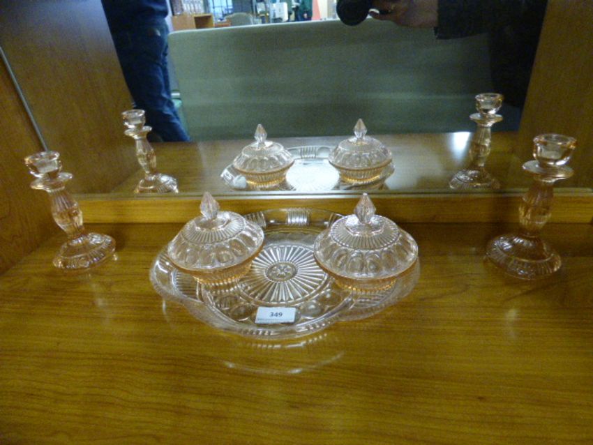 Pink Glass Dressing Table Set