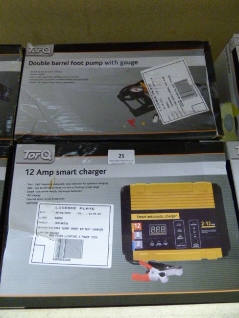 *Torq 12 Amp Smart Charger and Double Barrel Foot Pump with Gauge