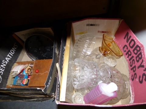 2 Boxes of Assorted Cut Glass - Sewing Kits etc
