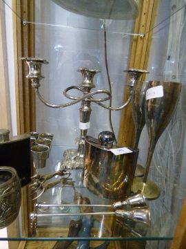 Collection of Silver Plated Ware including Candelabra - Glasses - Hip Flasks etc