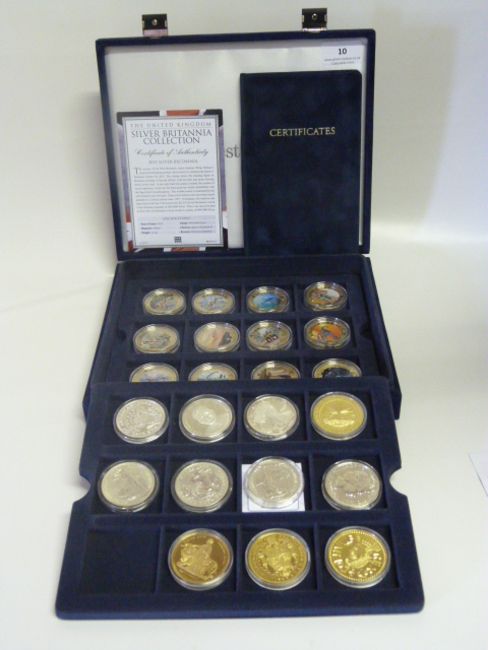 Assorted Coinage Including a Set of 12 Age of the Dinosaur Coins in Copper and 24 Carat Plate and a Further 11 Coins Silver Noticed