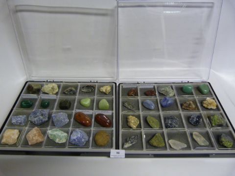 40 Assorted Geological Stones, Gems and Minerals Including Taramite, Epidote, Obsidian, Geode, Verdelite, Sodalite, Rock Crystal, Rhodolite, Celestine, Dumortierite, Garnet, Albite, Apatite, Heulandite, Lapis Lazuli, Olivine, Siderite, Conichalcite, Malachite and Sardinian Jaspers.