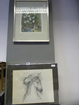2 Framed Prints - 1 Depicting Horses and 1 Flowers