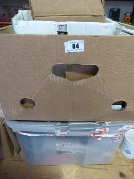 Box of assorted clothing and Box containing Badges - etc