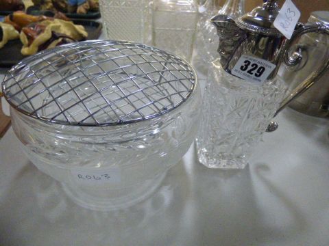 Cut Glass Rose Bowl & Claret Jug