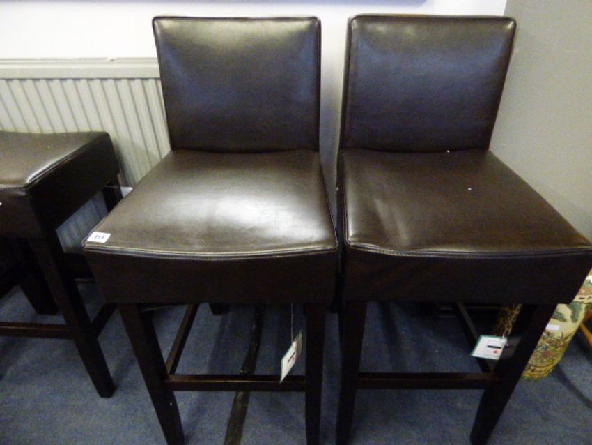 *PAIR OF BROWN LEATHER HIGH SEAT BAR CHAIRS