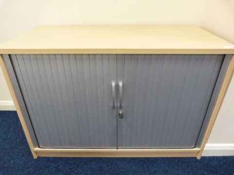 *Light Ash and Silver Stationery Cupboard Enclosed by Tambour Doors