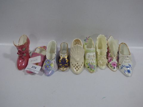 Nine porcelain shoes