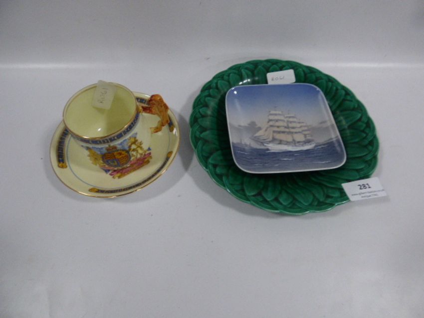 Green wedgewood plate with Copenhagen Plate and Coronation cup and saucer