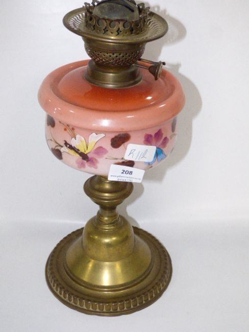 Peach Glass and Brass Oil Lamp Base
