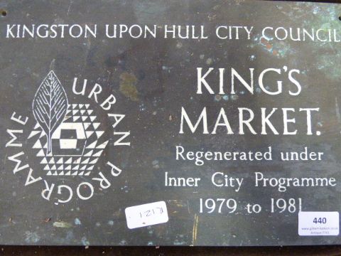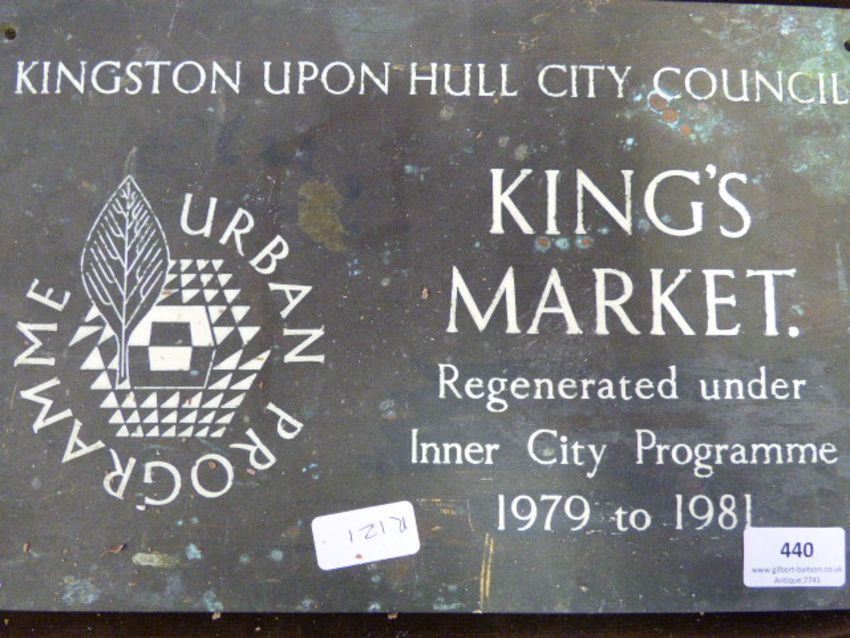 a brass advertising plaque for Kingston Upon Hull city Council Kings market