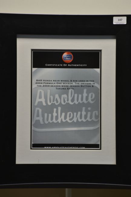 FROM THE 2004 FORMULA 1 SEASON, JENSON BUTTON AND TAKUMA SATO USED RACE BBS WHEEL AND BRIDGESTONE POTENZA TYRE WITH CERTIFICATE WITH AUTHENTICITY