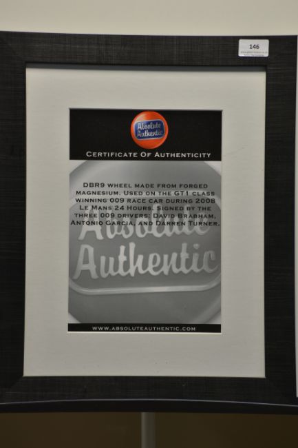 CAR 009 RACE WHEEL GT1 WINNER LE MANS 2008 MADE FROM FORGED MAGNESIUM AND SIGNED BY ALL 3 DRIVERS, DAVID BRABHAM, ANTONIO GARCIA AND DARREN TURNER WITH CERTIFICATE OF AUTHENTICITY