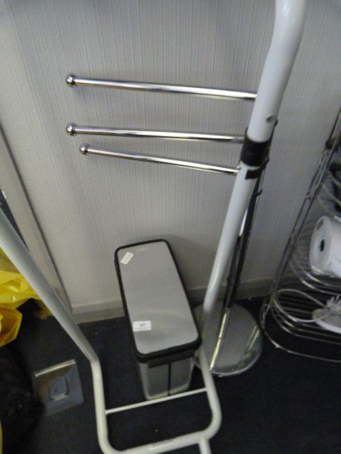 Waste bin, towel rail and a bed frame