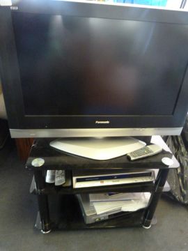 Panasonic model tx32lxd 600 flat screen TV complete with stand and Panasonic DVD and VCR players