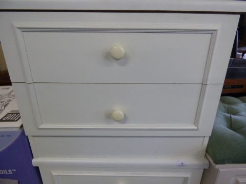 White chest of two drawers with white porcelain handles
