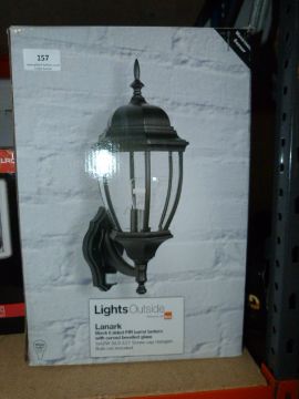 Two boxed lights outside Lanark black six sided barrel lantern outdoor lights
