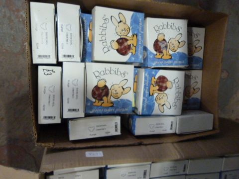 Box containing a large quantity of Rabids baby swimwear (various sizes, shapes, etc)