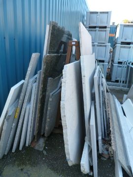 *Steel A-Frame Stillage Containing Various Cut and Part Sheets of Polished and Other Granite/Marble Work Surface