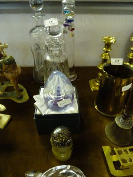 Assorted Glassware Including; Two Decanters, Paper Weights and an AshTray