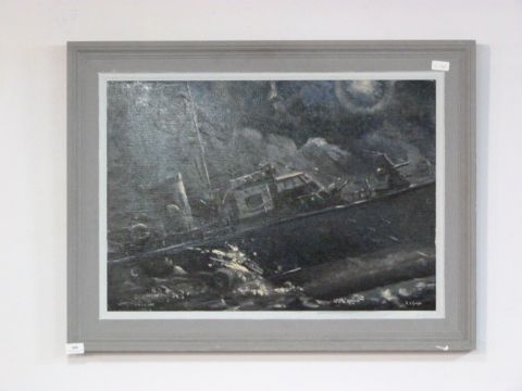 Framed Original Oil Painting by A.W.Hodg Rough Night 1942