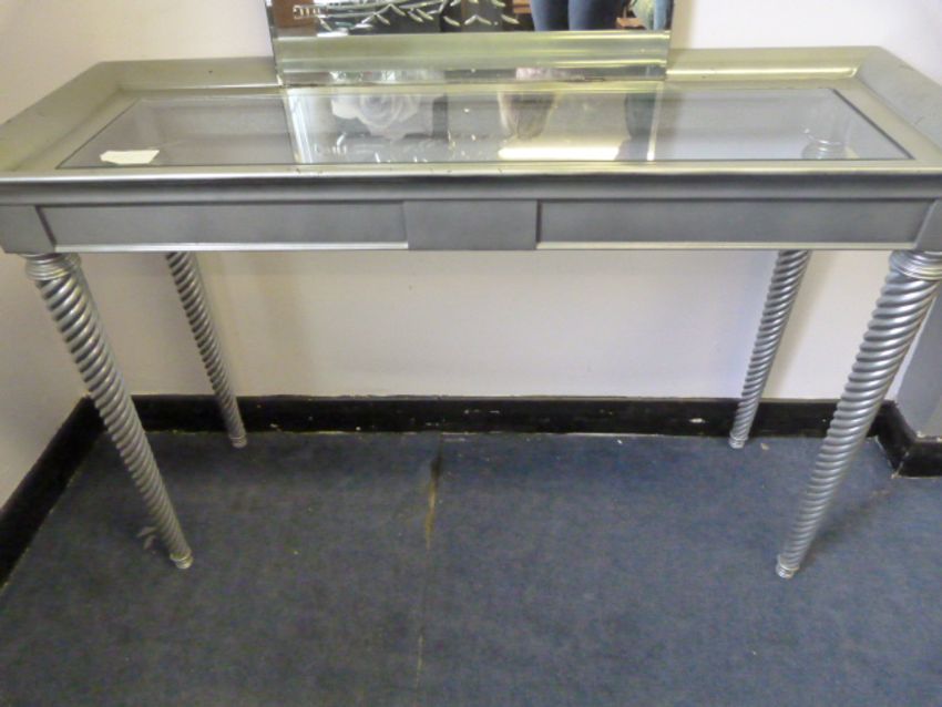 Silver Hall Table with Glass Top on Tapered Barley Twist Legs