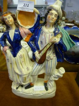 Staffordshire Flat Back Ornament Depicting Folk Dancers