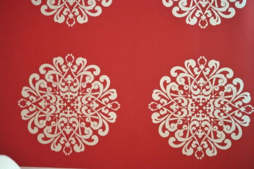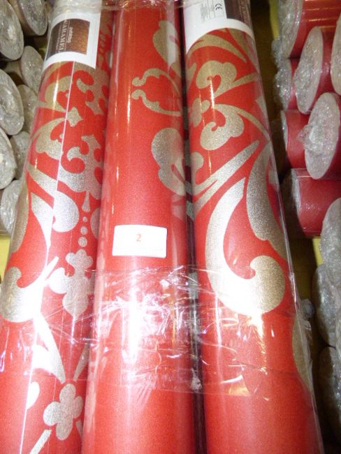 Six Rolls of Red and Gold Damask Floral Damask Wallpaper Design: CCA04