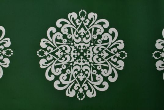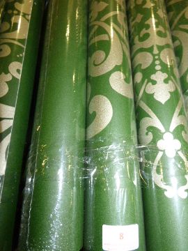 Six Rolls of Green with Mica Gold Floral Vinyl Wallpaper: CCDA07
