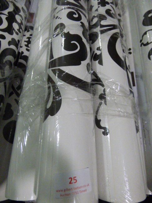 Seven Rolls of White with Black Floral Vinyl Wallpaper Design CCDA02