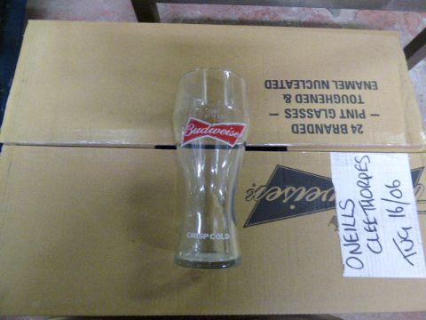 Box Containing Twenty Four Branded Budweiser Pint Glasses