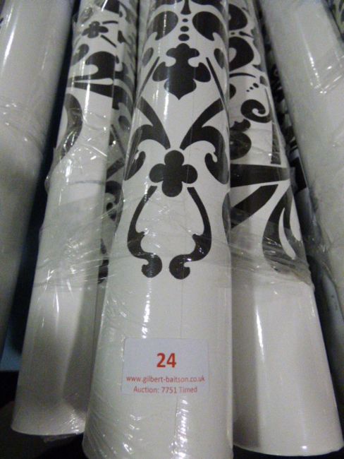 Seven Rolls of White with Black Floral Vinyl Wallpaper Design CCDA02