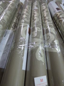 Six Rolls of Beige with Gold Floral Vinyl Wallpaper